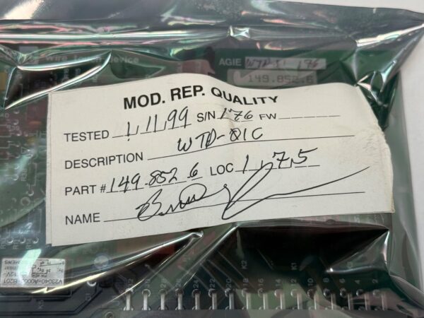 The Agie 149.852.6 Control Module Wire Touch Device WTD-01C is a high-quality industrial automation equipment manufactured in Italy. This unit, designed by Agie, serves as a control module wire touch device for precise and efficient automation of industrial processes. With its unique model number WTD-01C, this device offers reliable performance and is a valuable addition to any industrial automation system.
