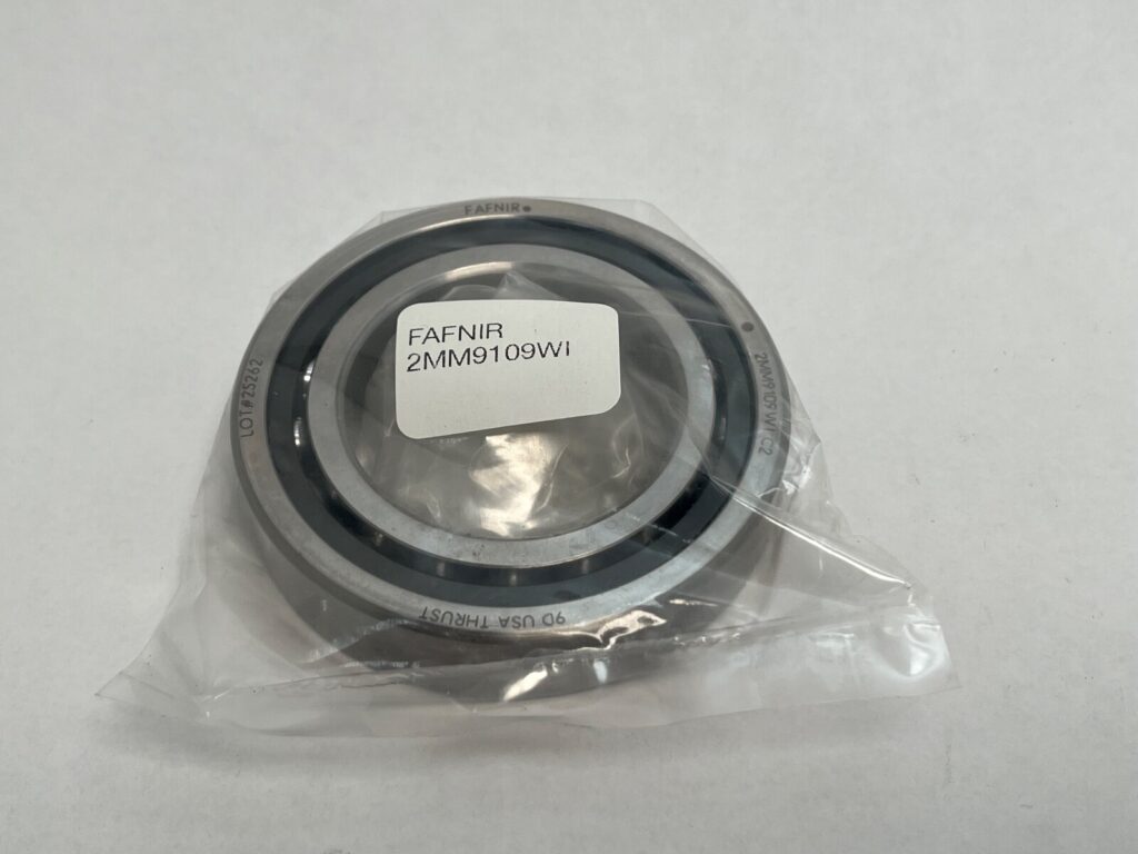 The Fafnir 2MM9109WI Angular Bearing 7009-C is a high-quality steel bearing with a bore diameter of 45mm, outside diameter of 75mm, and width of 16mm. This unit is an Angular Contact Ball Bearing designed for industrial automation and motion control systems. Made in the United States by the reputable brand FAFNIR, this bearing is a reliable and durable component for reducing friction and ensuring smooth operation in various mechanical power transmission applications.