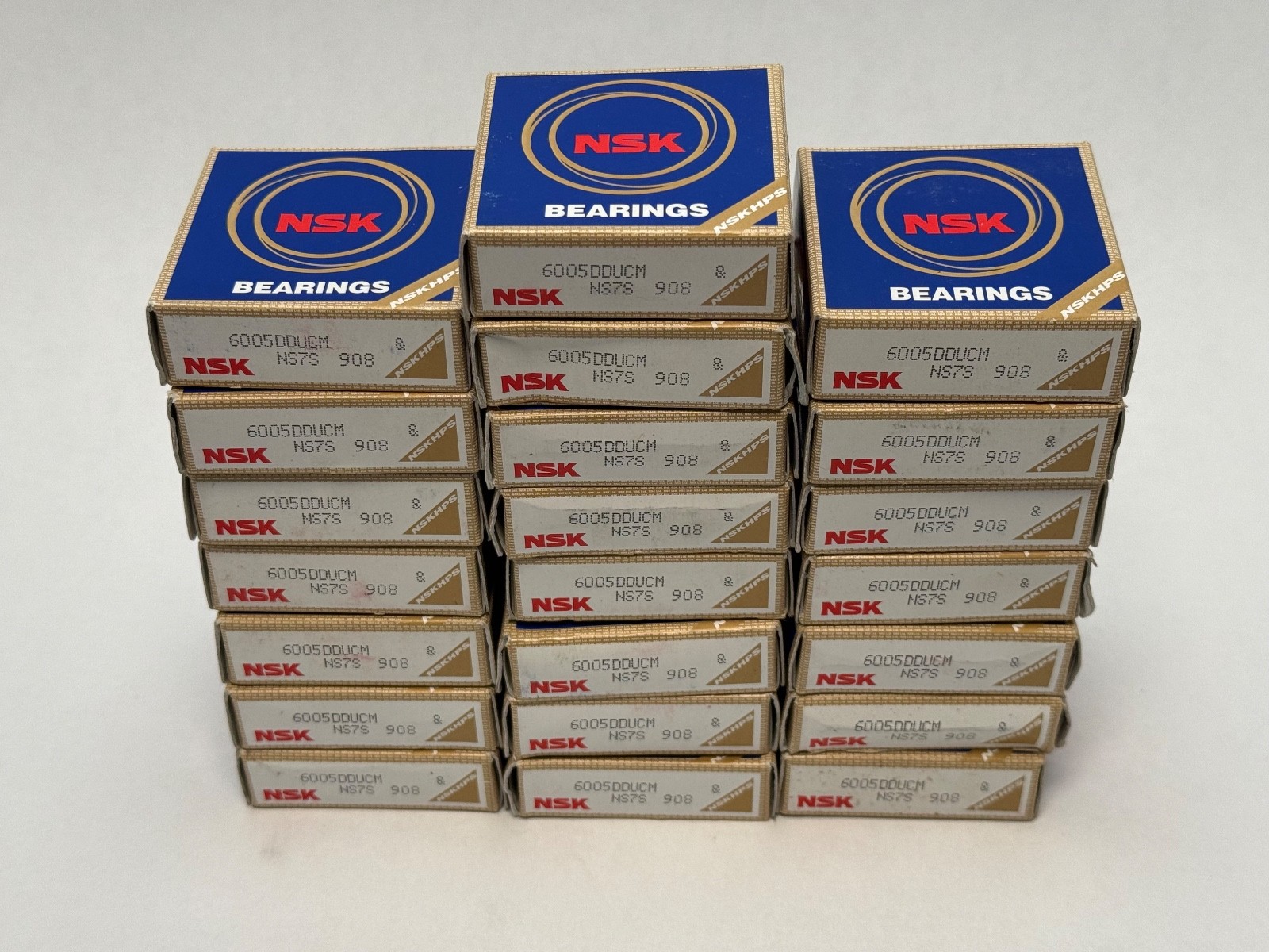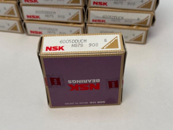 The product is a set of 22 NSK 6005DDUCM ball bearings with rubber seals, model 6005 2RS RS. Made of steel, these bearings have a bore diameter of 25mm, an outside diameter of 47mm, and a width of 12mm. Manufactured in Japan, they are designed for industrial automation and motion control applications, offering reliable and efficient performance for machinery and equipment. The rubber seals provide additional protection against dust and contaminants, ensuring the longevity and maintenance-free operation of the bearings.