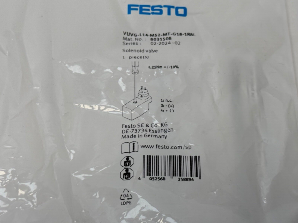 Upgrade your system with the Festo VUVG-L14-M52-MT-G18-1R8L Solenoid Valve today and experience unparalleled quality and efficiency!