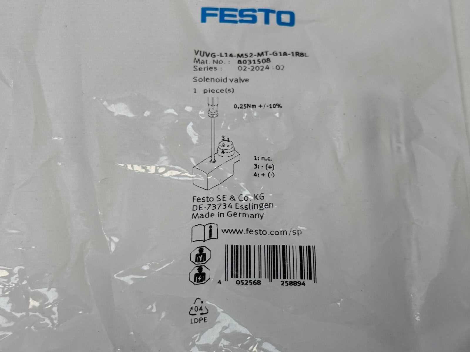 Part Number: VUVG-L14-M52-MT-G18-1R8L – ensure compatibility with your existing systems
