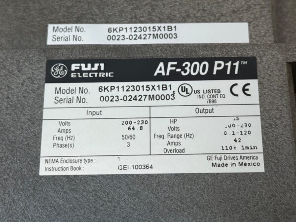 The Fuji 6KP1123015X1B1 Variable Frequency Drive is a reliable and efficient industrial automation product designed for controlling the speed of 3-phase motors up to 15HP. This specific model, AF-300 P11, is manufactured by GE Fuji, a trusted brand in the industry. Ideal for various motion control applications, this Variable Frequency Drive offers precise control over motor speed, making it an essential component for industrial automation systems in businesses and manufacturing settings.