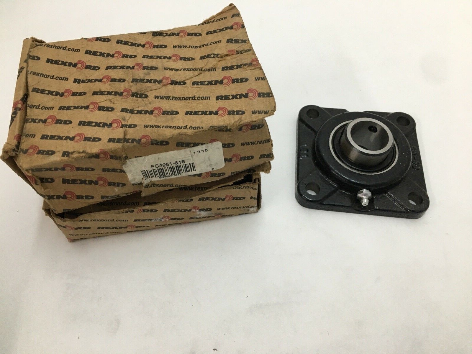 Rexnord FC4251-316 4-Bolt Flange Cartridge Bearing. 1-3/16 in Bore. Heavy duty cast iron housing. Set screw locking. Ideal for industrial machinery.