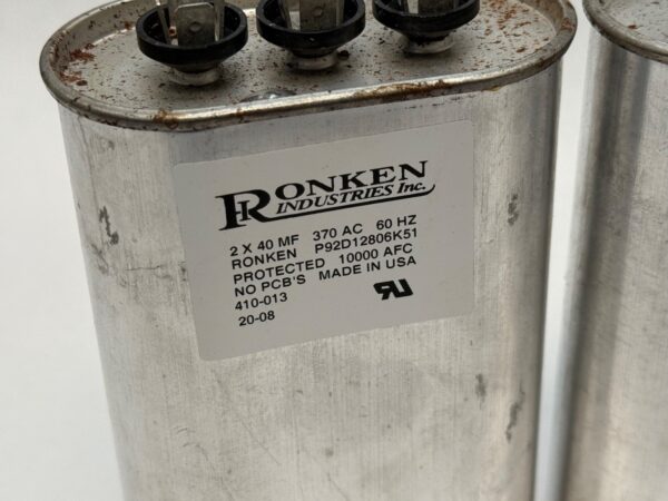 The Ronken P92D12806K51 Oil Filled Capacitor is a high-quality electronic component designed for industrial use. With a capacity of 2x40MF and a voltage rating of 370AC at 60Hz, this capacitor is suitable for a variety of electrical equipment and supplies. The set includes three pieces, making it ideal for businesses and industrial applications requiring reliable and durable capacitors. The Ronken brand is known for producing reliable electronic components, making this product a dependable choice for electronic and electrical systems.