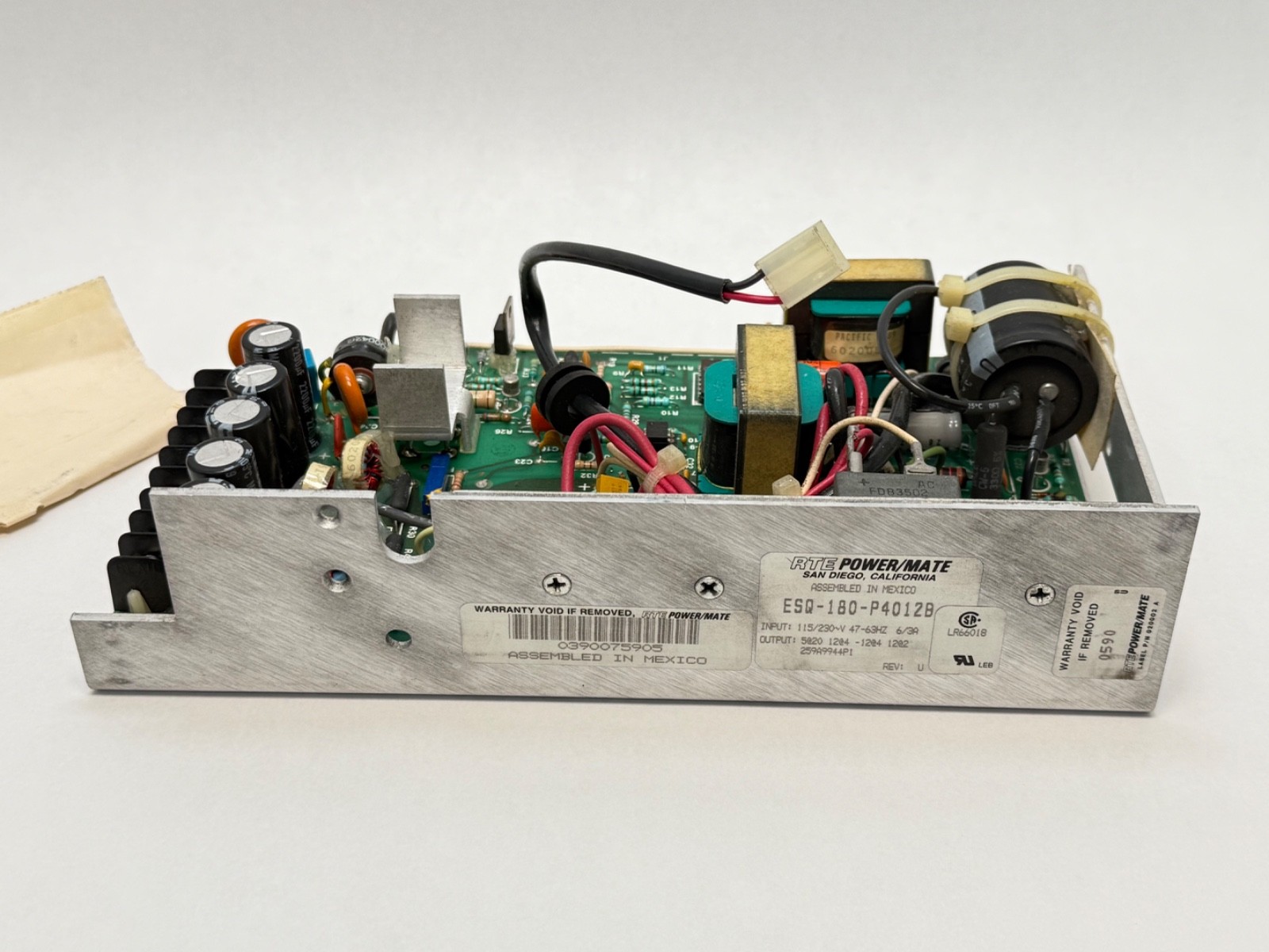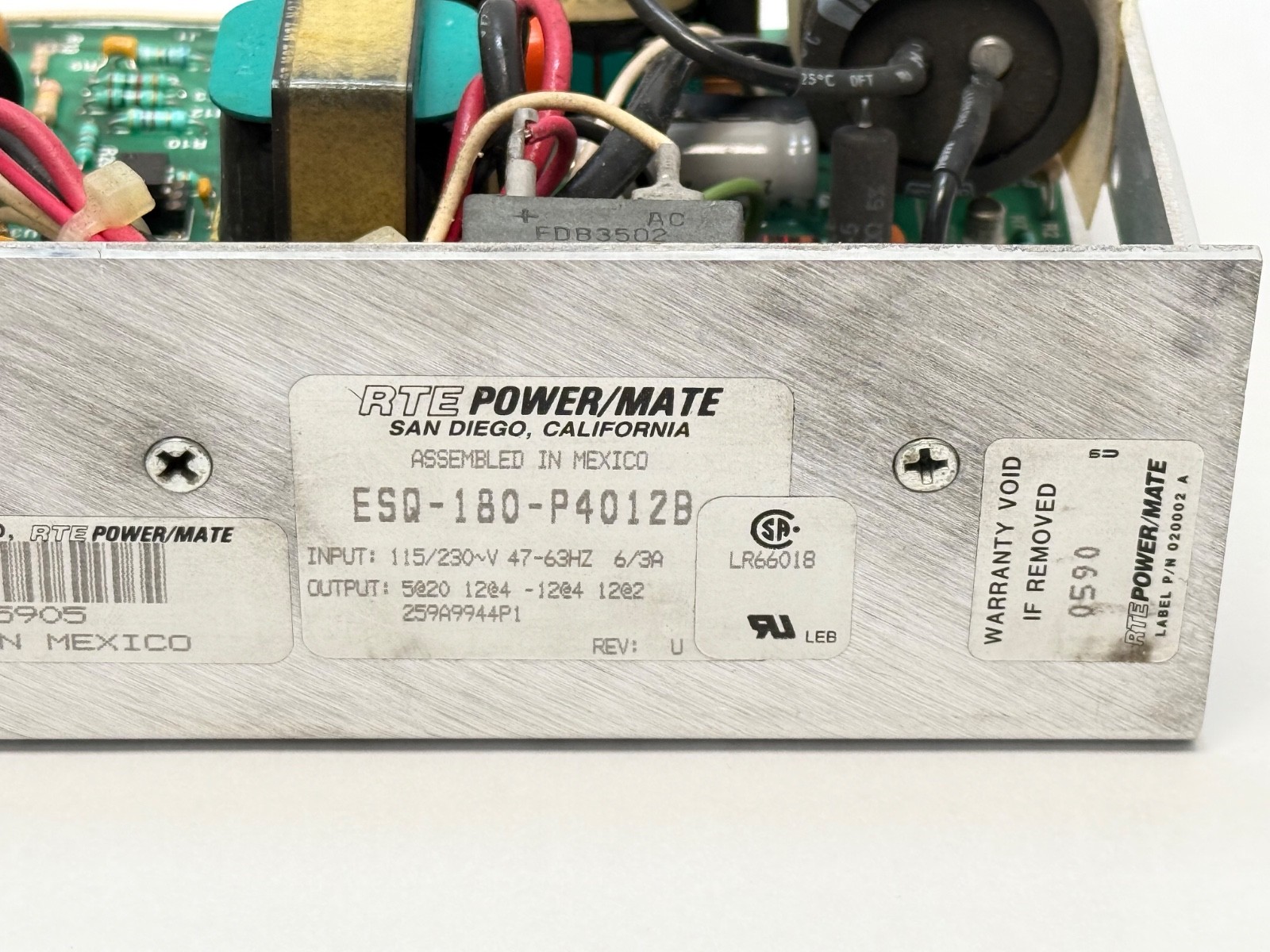 Introducing the RTE ESQ-180-P4012B Power Supply 1110024A Rev. U–a premier solution crafted by RTE COMPONENTS in the United States. Designed specifically for electrical equipment and industrial use, this state-of-the-art switching mode power supply delivers unparalleled reliability and efficiency, ensuring a stable power source for your operations.